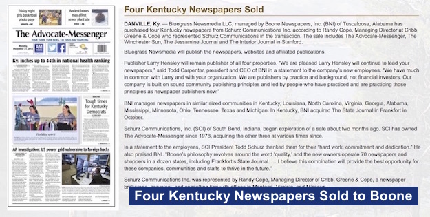 There are many pundits who predict the end of the newspaper industry and certainly the evidence shows significant declines in both paid circulation and advertising revenue over the past eight years. If newspaper businesses are in fact going the way of the buggy whip, why would any sensible company seek to acquire these properites? We assist buyers in evaluating and negotiating the purchase of publishing companies, and include consultation on valuation, deal structure, and market analysis. See more.