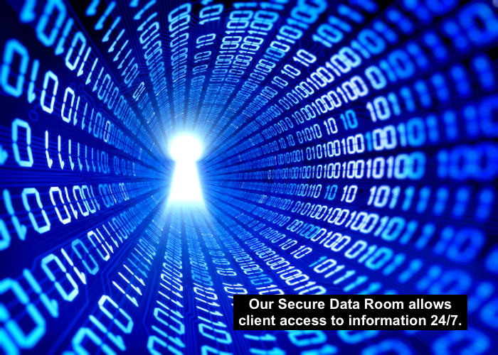 A file format is created in the CG&C data room and direct access is provided to our client. The data room is populated with financial and other detail information. Through the due diligence period the data room is used for all information requests, and maintains a tracking system to insure exactly what has been exchanged with an acquirer. Once the sale is closed our client can download the data room files and have a complete electronic copy of the entire transaction.