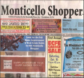 The Monticello Times is a 3,300 paid weekly, The Sunday Shopper is delivered to a wide area of 26,000 homes in Wright and Sherburne Counties. The publications in Monticello serve a rapidly expanding residential, commercial and industrial population along the high-growth I-94 freeway corridor between the Twin Cities and St. Paul. Over 1,000 new deliveries of the Monticello Shopper have been annually added to assure delivery to all new homes in the Monticello-Big Lake area.